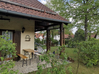 Auf der südseitigen Terasse mit angrenzendem Gartenbereich kann man einfach einmal die Seele baumeln lassen.